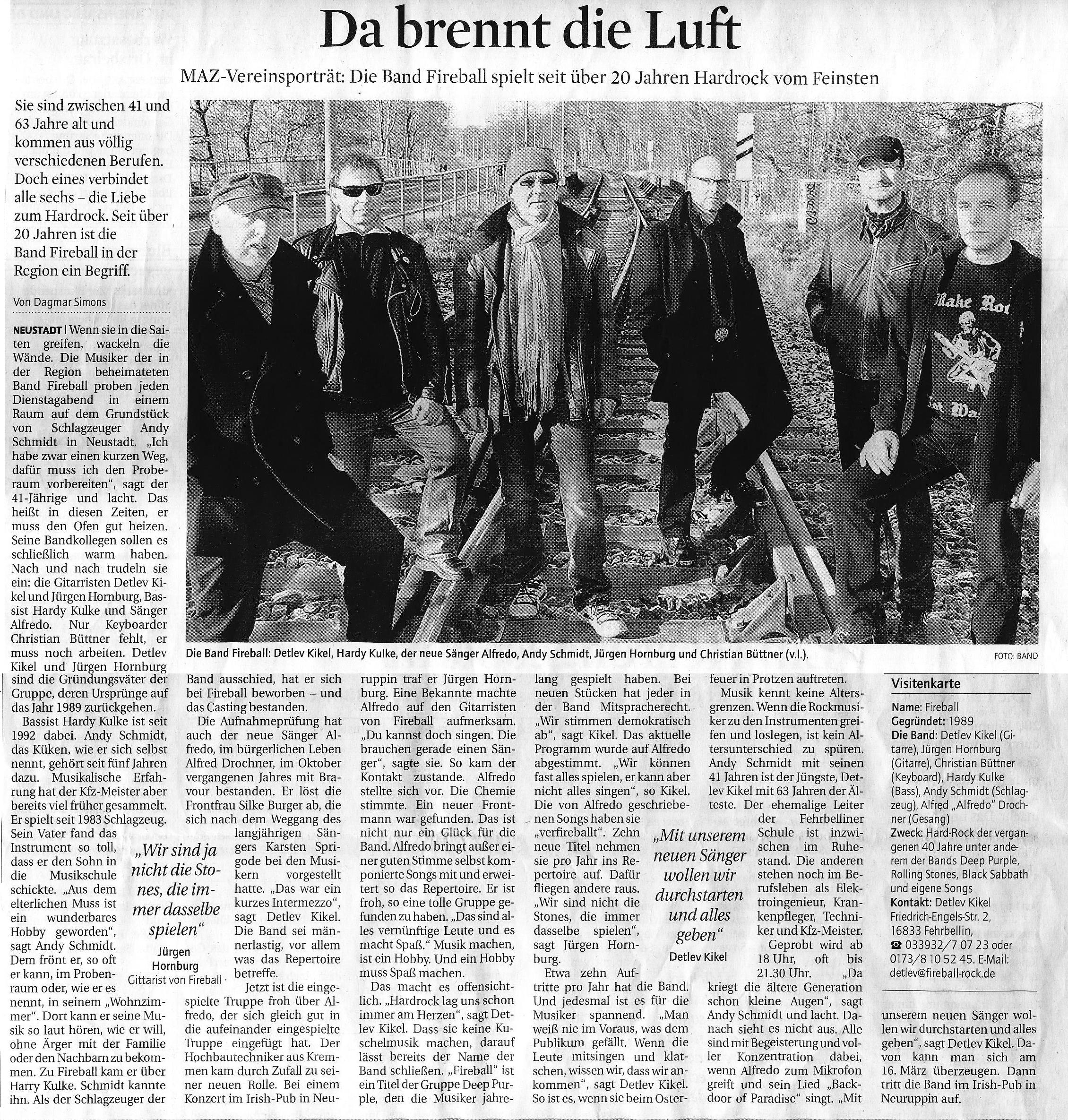 Am 6. Dezember 2013 spielte FIREBALL im Irish Pub in Neuruppin. Für Alfredo hat das kurze Intermezzo bei der Band hier begonnen, für die Band war es der letzte gemeinsame Gig in der Besetzung Alfredo, Andy, Christian B., Detlev, Hardy und Jürgen - mit Special Guest: Karsten!